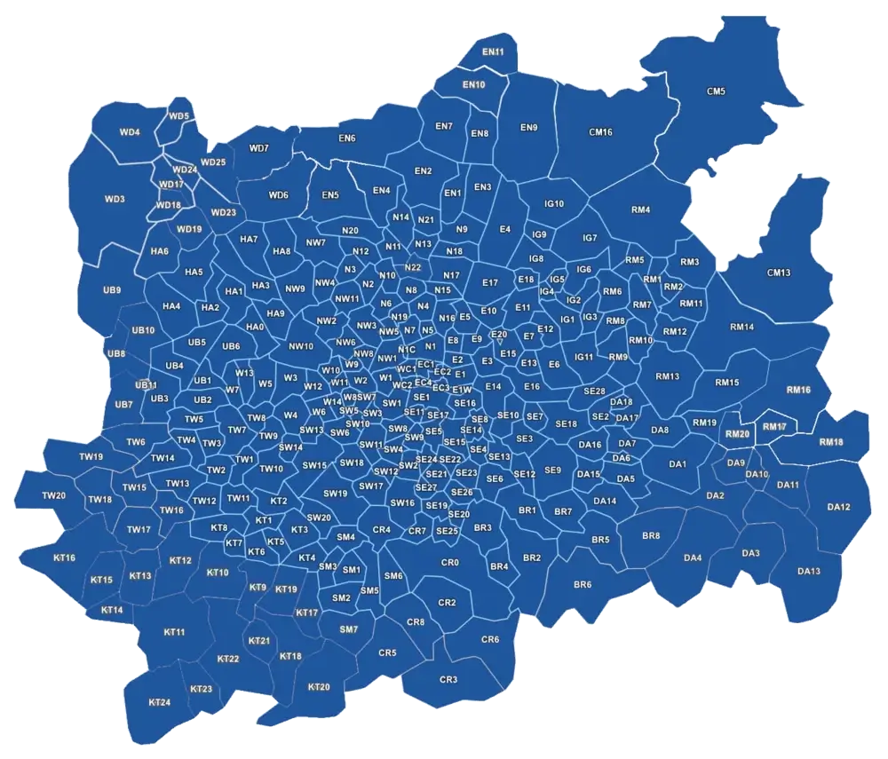 *Fine Carpet Cleaning operates in all of London. The map above shows all of the London postcodes we cover.